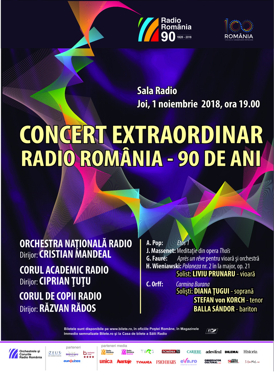 Sub bagheta apreciatului dirijor CRISTIAN MANDEAL, alături de ansamblul aniversat, vor evolua încă două dintre cele 6 formații muzicale ale instituției: Corul Academic Radio (dirijor: Ciprian Țuțu) și Corul de Copii Radio (dirijor: Răzvan Rădos).