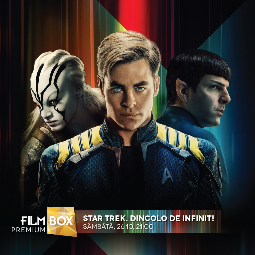 Schimbăm registrul și trecem într-o lume fantastică. Pe 26 octombrie, de la ora 21:00, tot la FilmBox Premium, este programat ”Star Trek Beyond” (”Star Trek. Dincolo de infinit”), un science fiction regizat de Justin Lin, în scenariul lui Simon Pegg și Doug Jung, bazat pe serialul de televiziune ”Star Trek”, realizat de Gene Roddenberry. Este al 13-lea film din această franciză, iar Chris Pine și Zachary Quinto sunt actorii care îi interpretează pe Căpitanul James T. Kirk și Comandantul Spock. Au fost păstrați în distribuție și Simon Pegg, Karl Urban, Zoe Saldana, John Cho și Anton Yelchin.