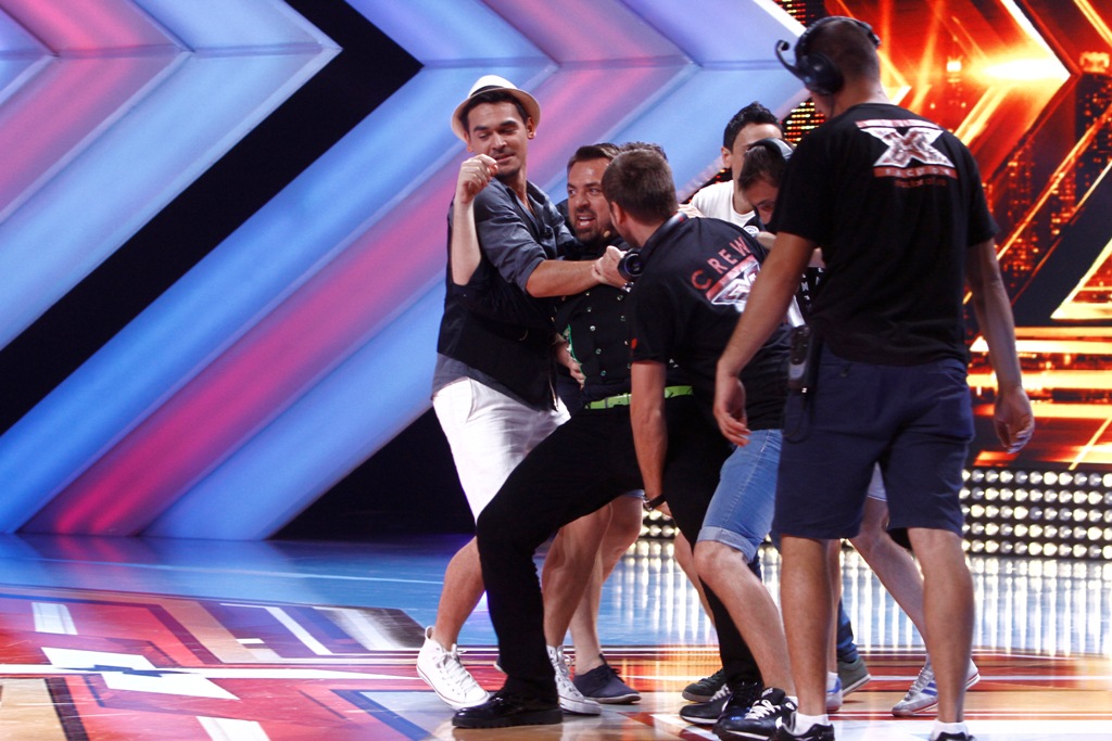 Răzvan Simion nu s-a lăsat până nu a încercat toate medicamentele pe care le-a găsit în cabina juratului, convins că de acolo îşi ia resursele necesare, însă nu a sfârşit prea bine, stomacul jucându-i feste, aşa că a decis să se răzbune. În momentul în care, după o zi întreagă de audiţii la Palatul Copiilor din Bucureşti, showmanul a anunţat că i s-au terminat bateriile de la lavalieră, Răzvan s-a oferit să se ocupe personal de acest subiect. Nu a reuşit însă, pentru că juratul „X Factor” a alergat într-una pe scena concursului, până a zăpăcit întreaga echipă din culise, băieţii luând decizia să îl scoată pe braţe de pe scenă.